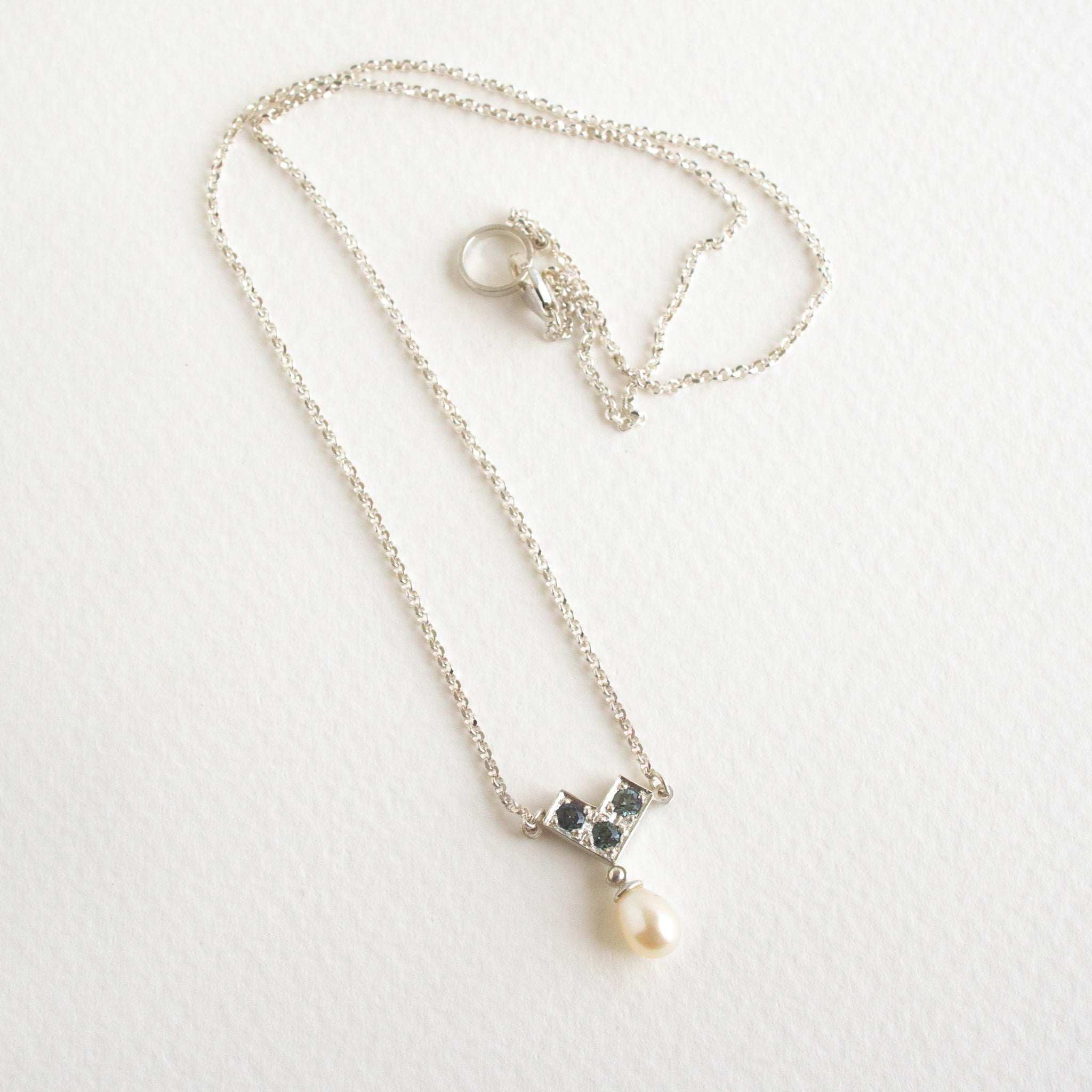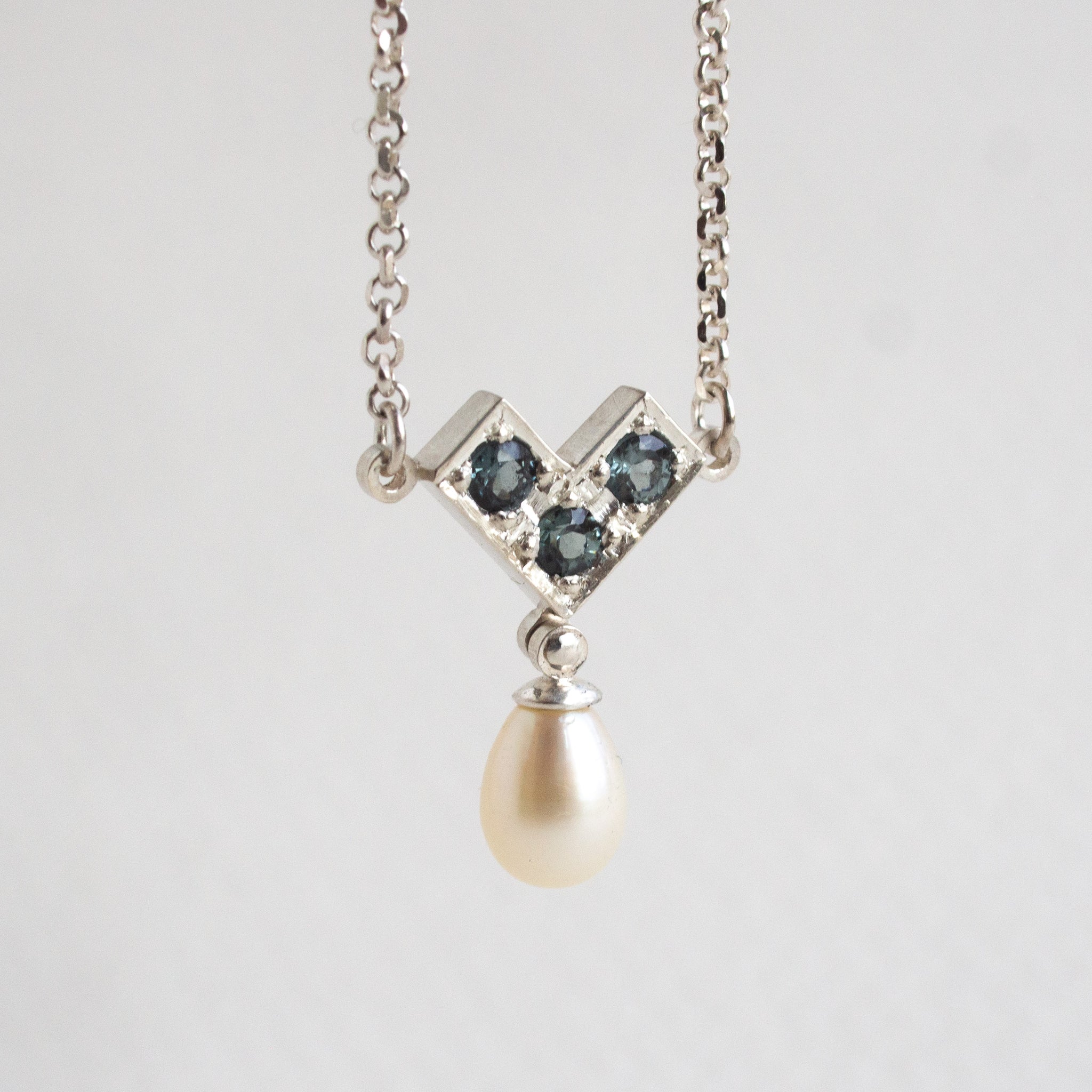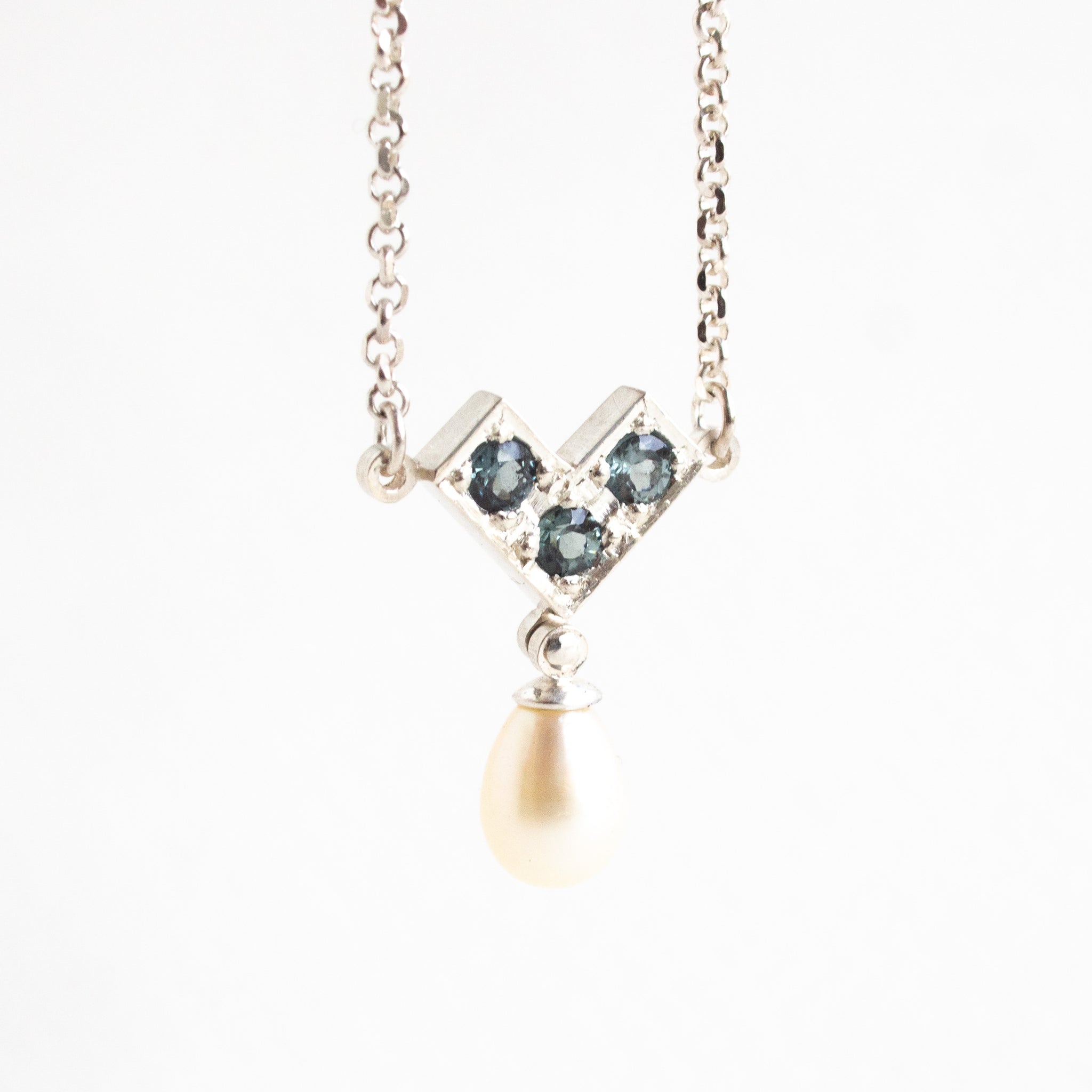 This elegant and sparkly pearl drop necklace, features natural grey spinels set in sterling silver with a fresh water pearl. Pairs perfectly with Grey Spinel and Pearl Drop Earrings