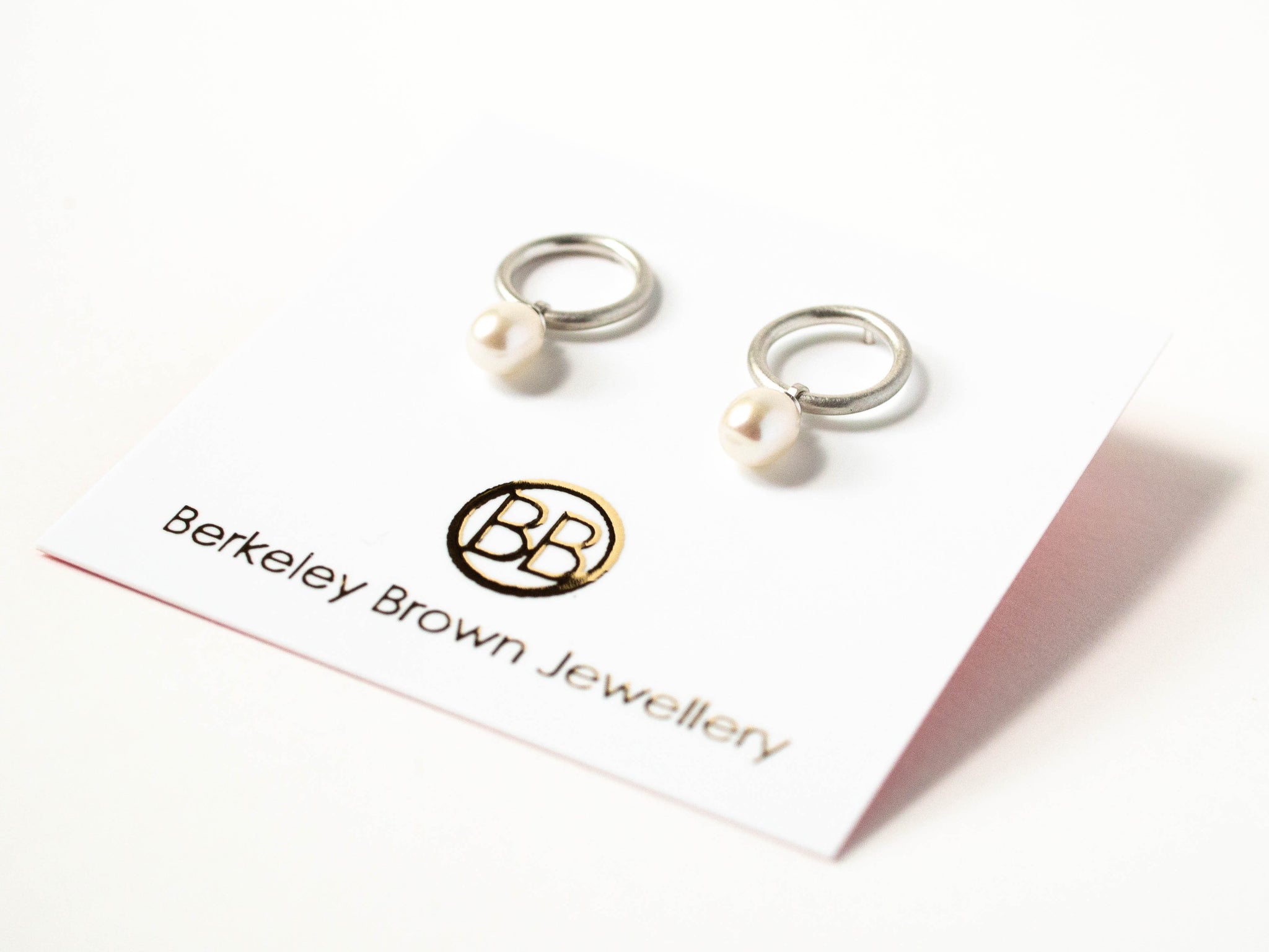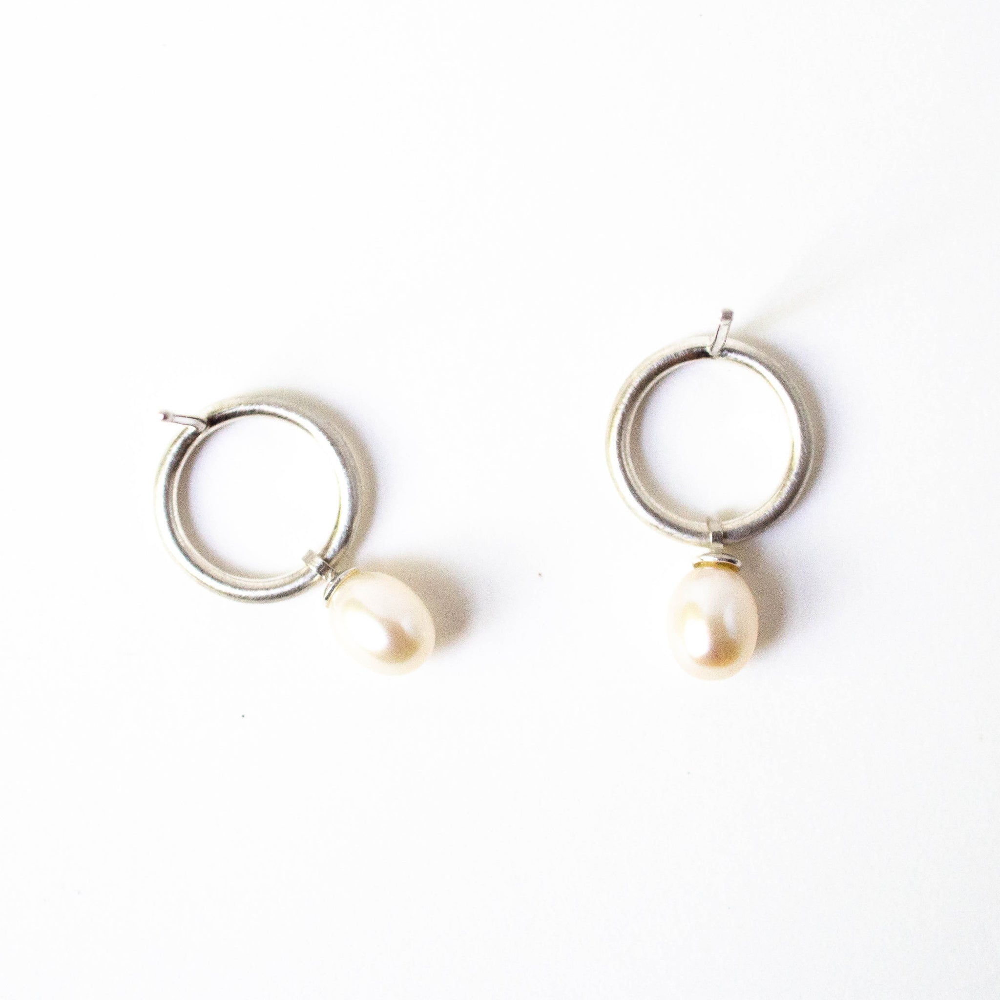 Made entirely in sterling silver, with freely moving 5x7mm fresh water pearls, these studs have sterling silver posts and friction earring backs and measure 2.1cm in length.